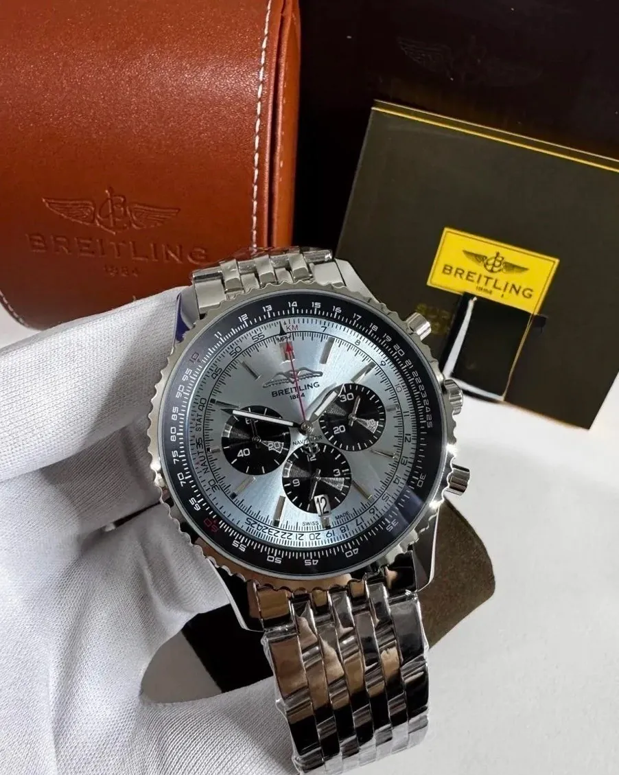 Além disso, o Breitling Navitimer é à prova d’água até 20 ATM, perfeito para uso diário e atividades aquáticas sem preocupações. O produto acompanha caixa exclusiva e manual Breitling, oferecendo uma experiência completa e premium.