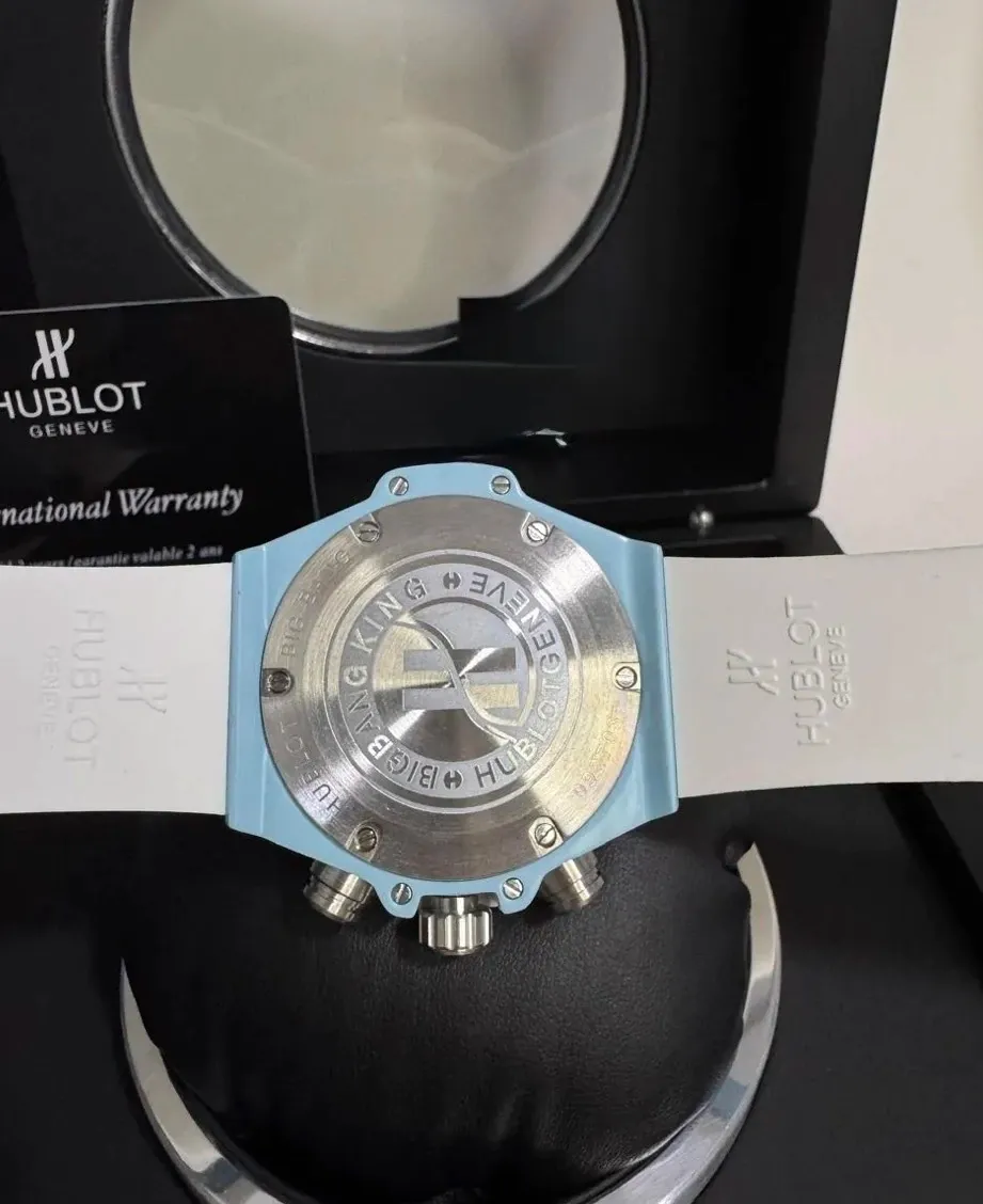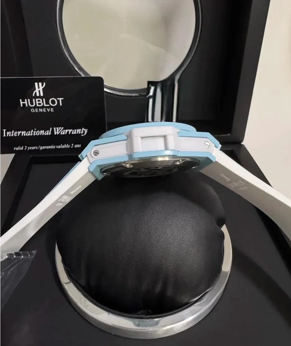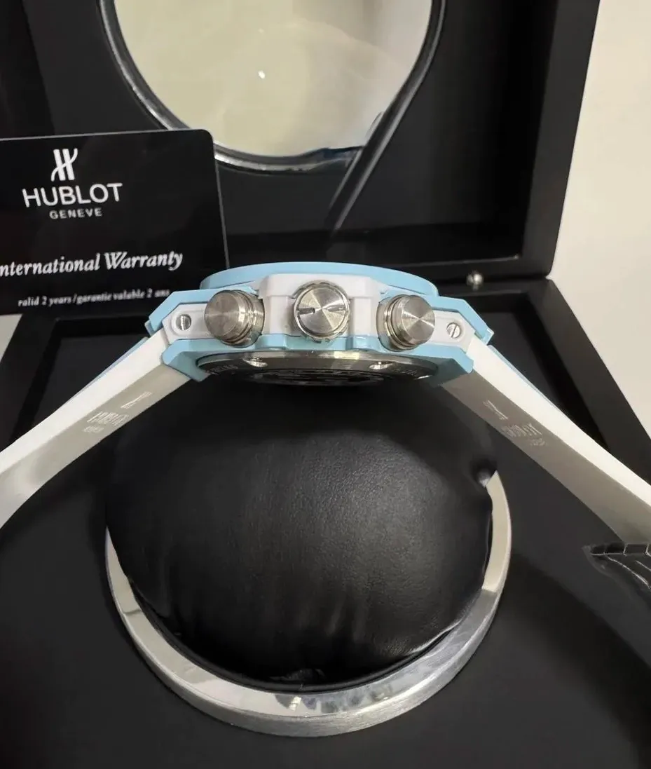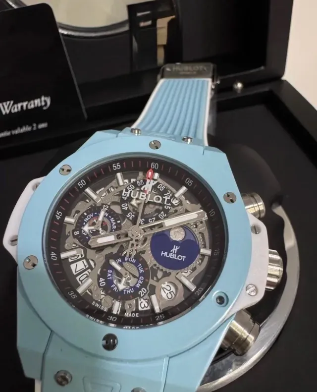 Além disso, é à prova d’água até 20 ATM, perfeito para quem busca resistência em todas as ocasiões. O relógio acompanha caixa exclusiva e manual Hublot, completando a experiência de um produto de alta qualidade.