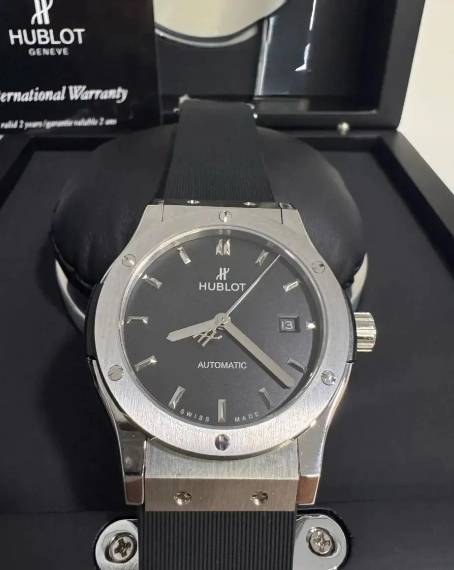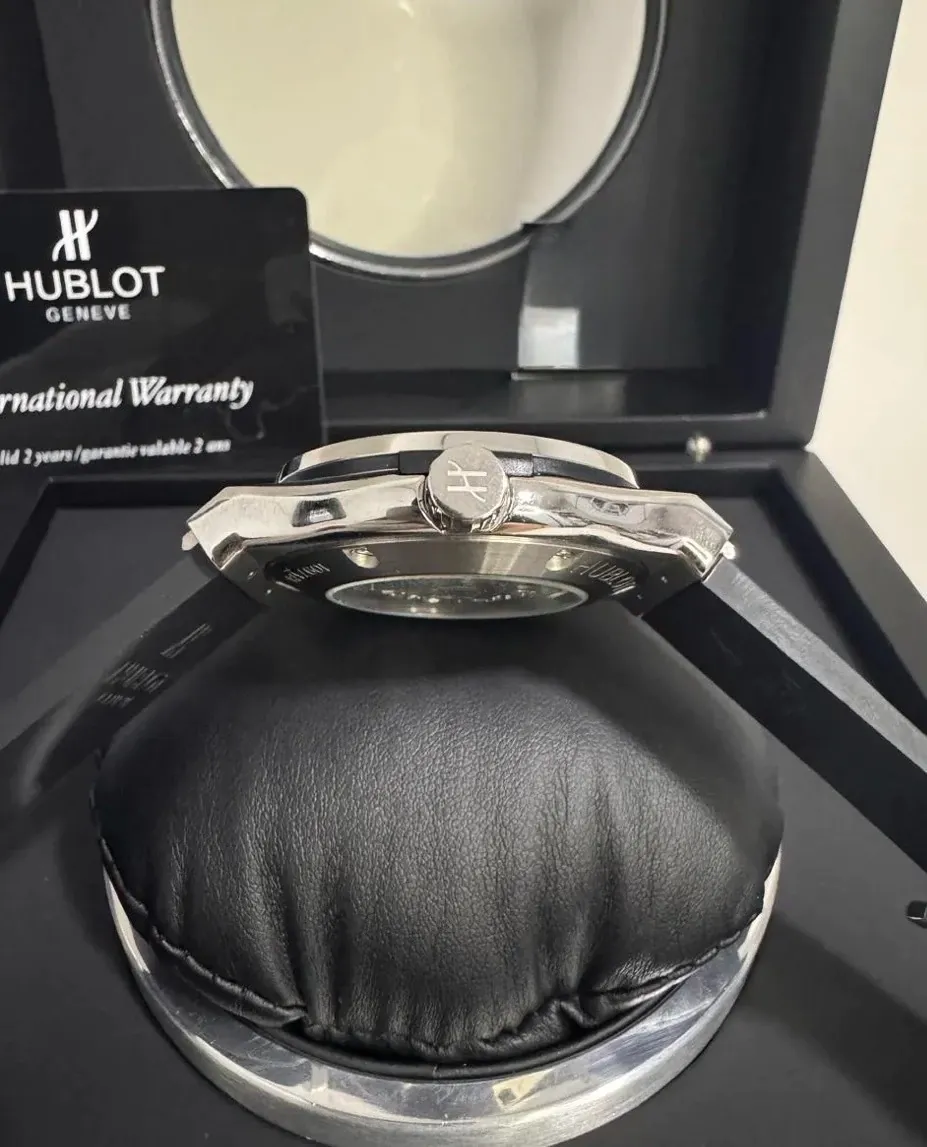 Além disso, o Hublot Classic é à prova d’água até 20 ATM, ideal para quem busca resistência sem abrir mão da elegância. Acompanha caixa exclusiva e manual, complementando a experiência de um produto premium.