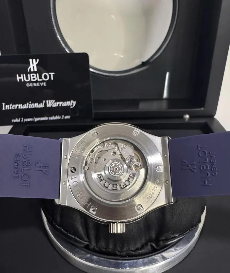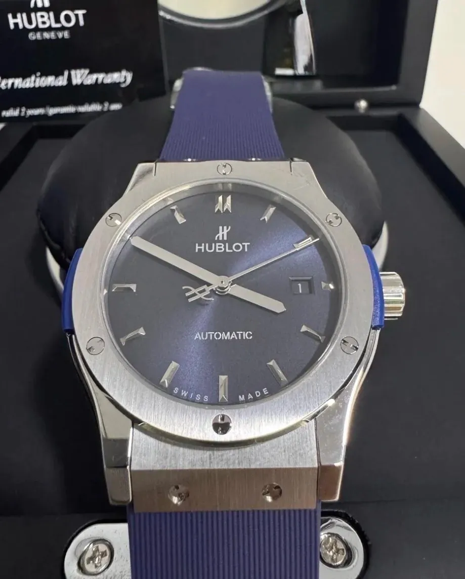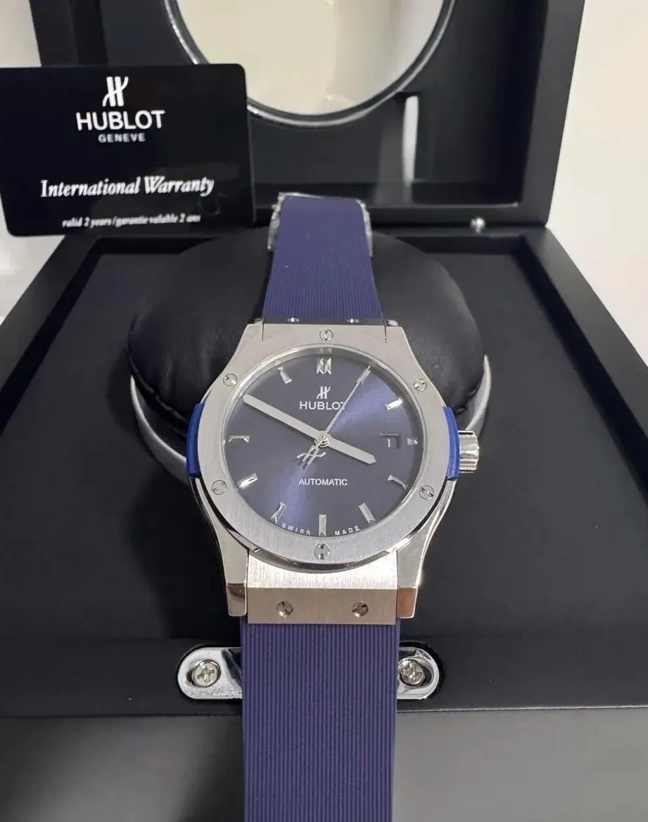 Além disso, o Hublot Classic é à prova d’água até 20 ATM, ideal para quem busca resistência sem abrir mão da elegância. Acompanha caixa exclusiva e manual, complementando a experiência de um produto premium.