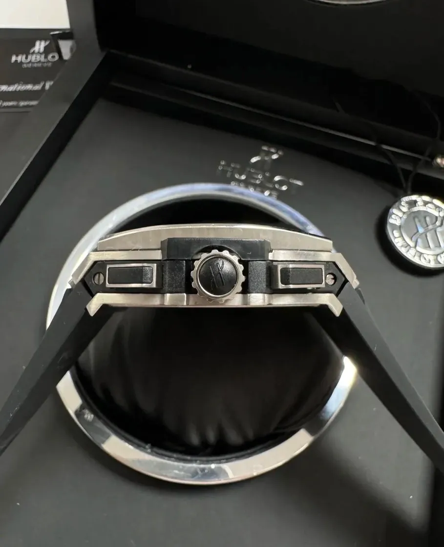 Além disso, é à prova d’água até 20 ATM, garantindo proteção em diversas situações. Acompanha caixa exclusiva e manual Hublot, completando uma experiência de compra premium.