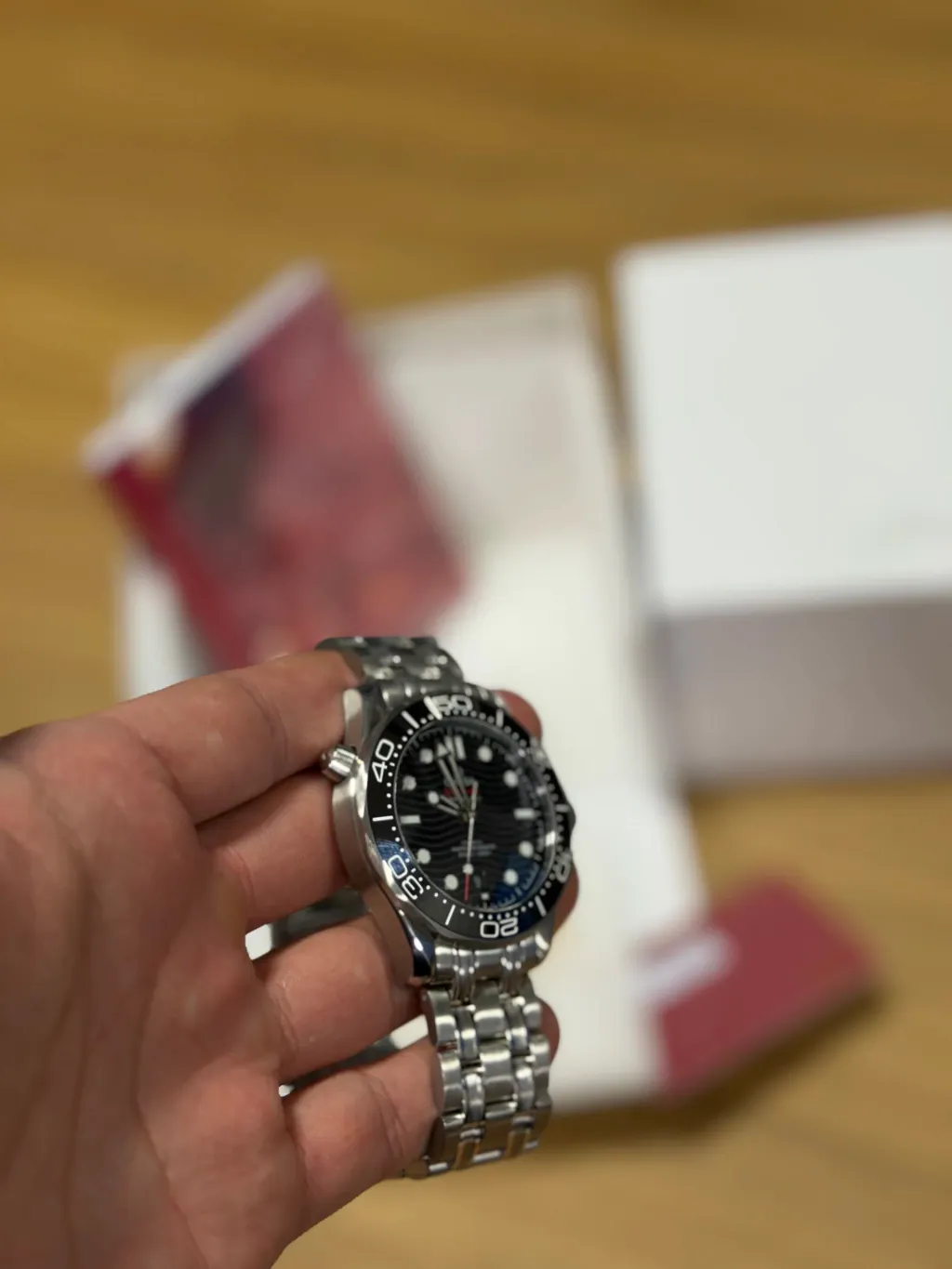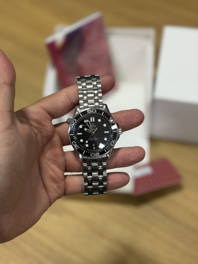 Com 42 mm de diâmetro, o design robusto e sofisticado é realçado pelo vidro em safira, resistente a riscos, e pela caixa em aço inoxidável denso, que garante durabilidade e um acabamento elegante. Além disso, o Omega Seamaster é à prova d’água até 20 ATM, ideal para atividades aquáticas e uso diário sem preocupações.