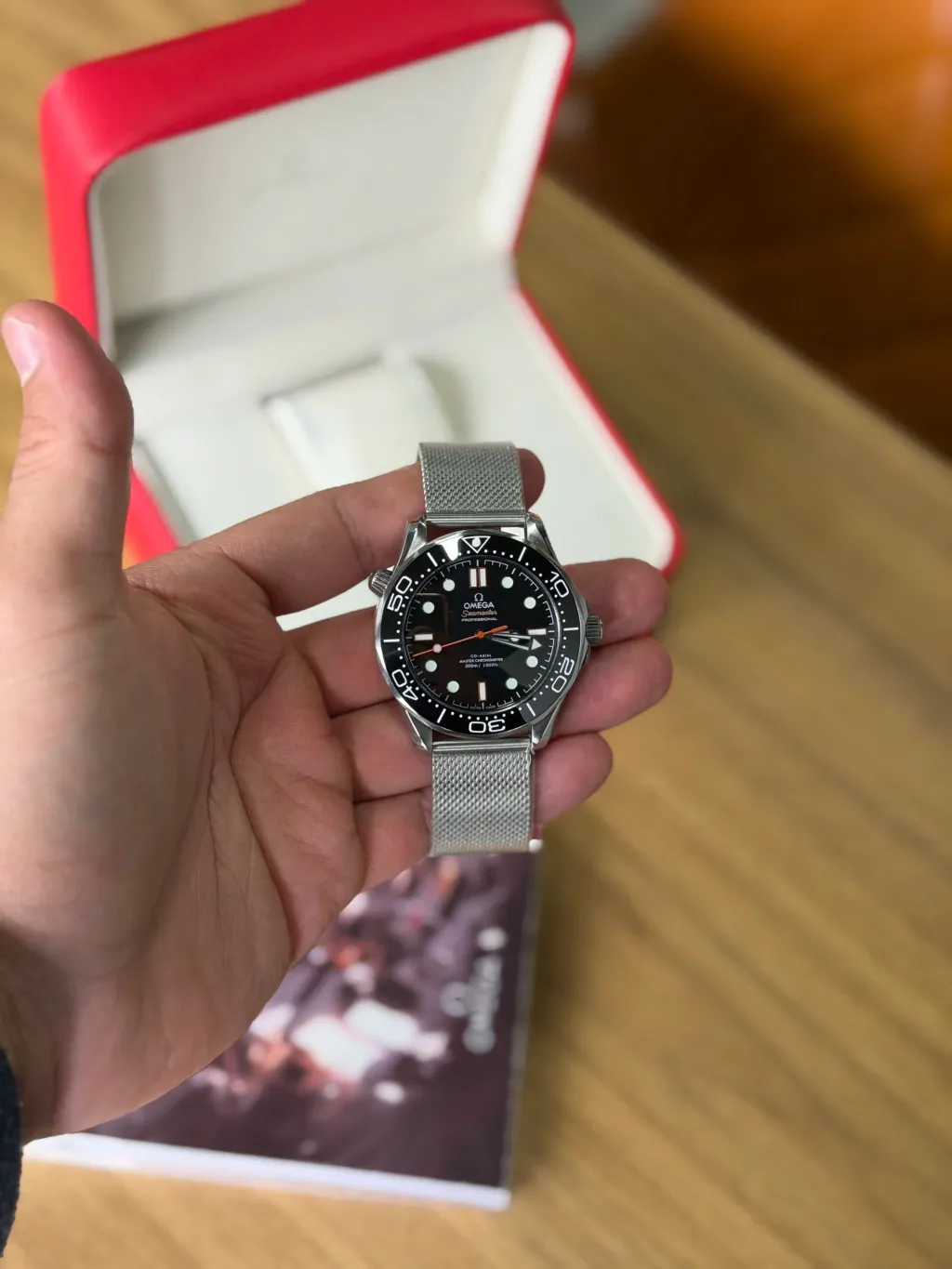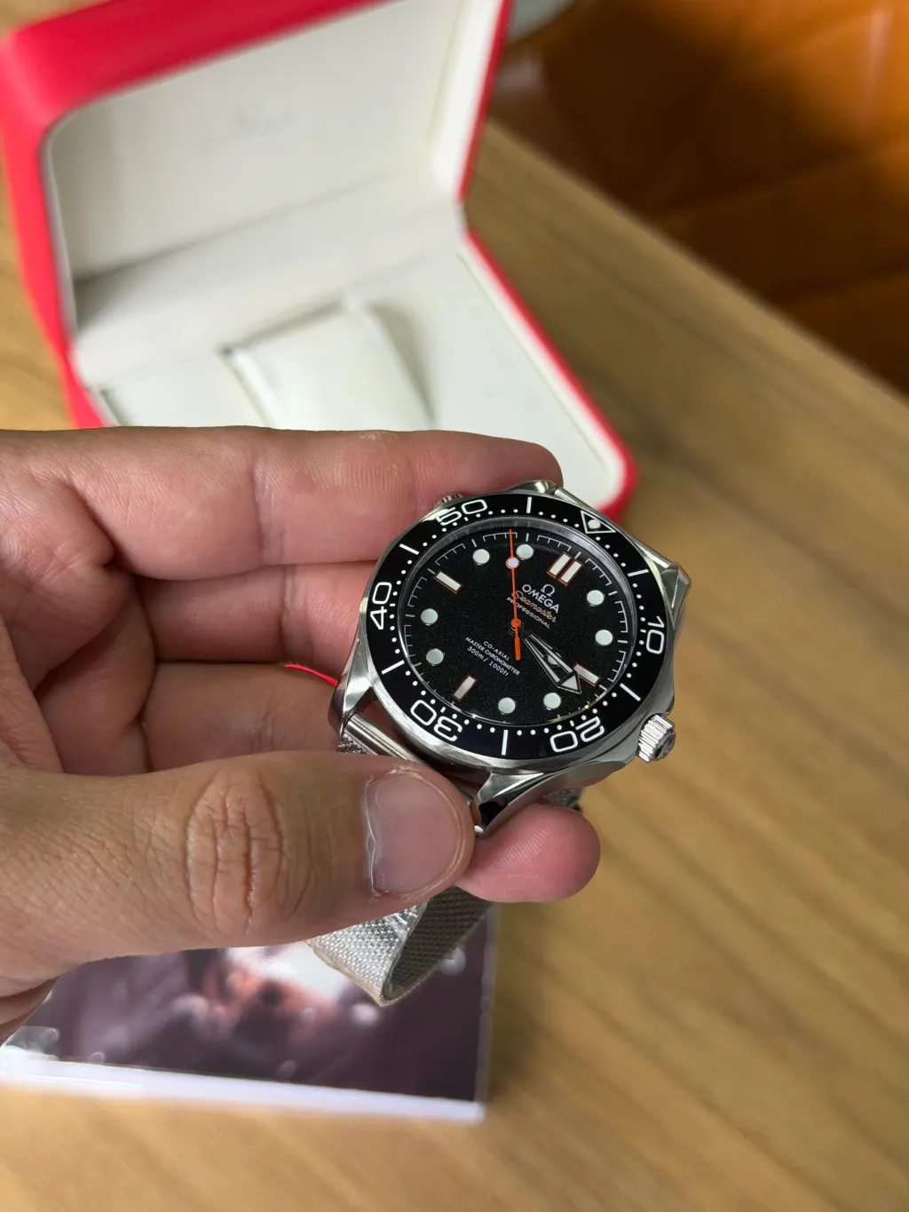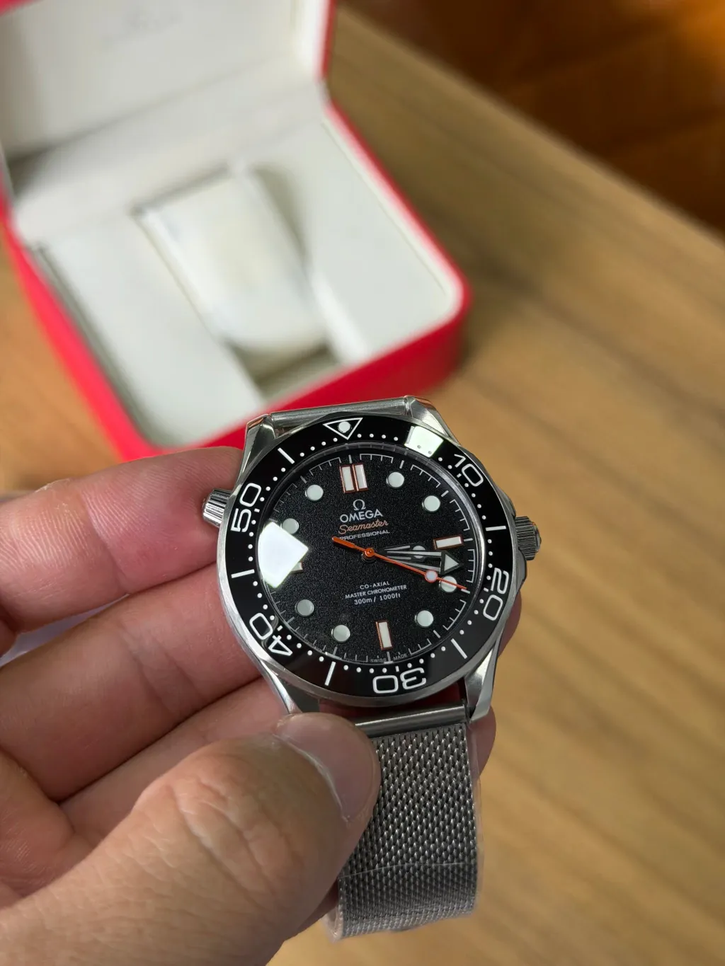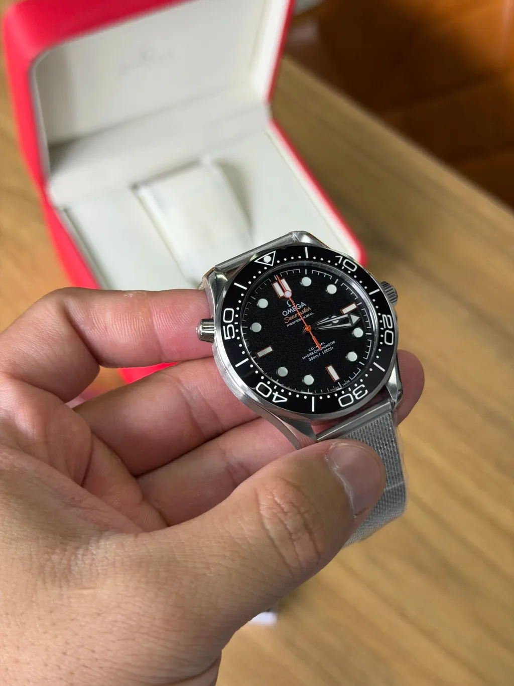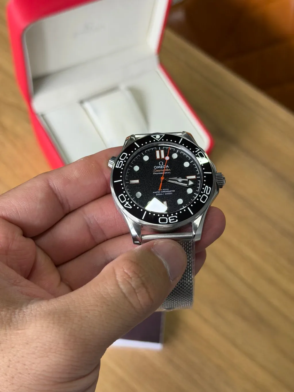 Com 42 mm de diâmetro, o design robusto e sofisticado é realçado pelo vidro em safira, resistente a riscos, e pela caixa em aço inoxidável denso, que garante durabilidade e um acabamento elegante. Além disso, o Omega Seamaster é à prova d’água até 20 ATM, ideal para atividades aquáticas e uso diário sem preocupações.