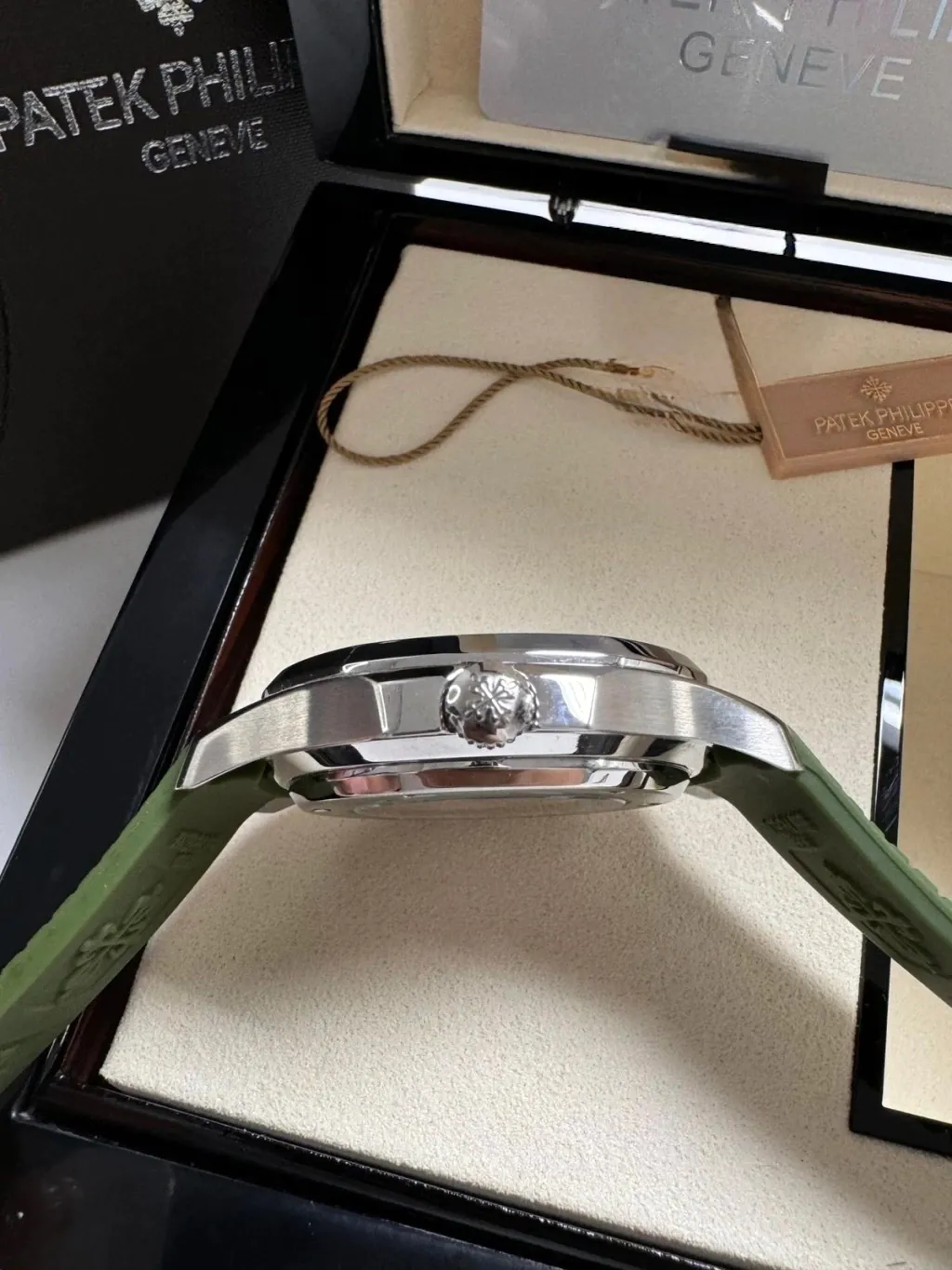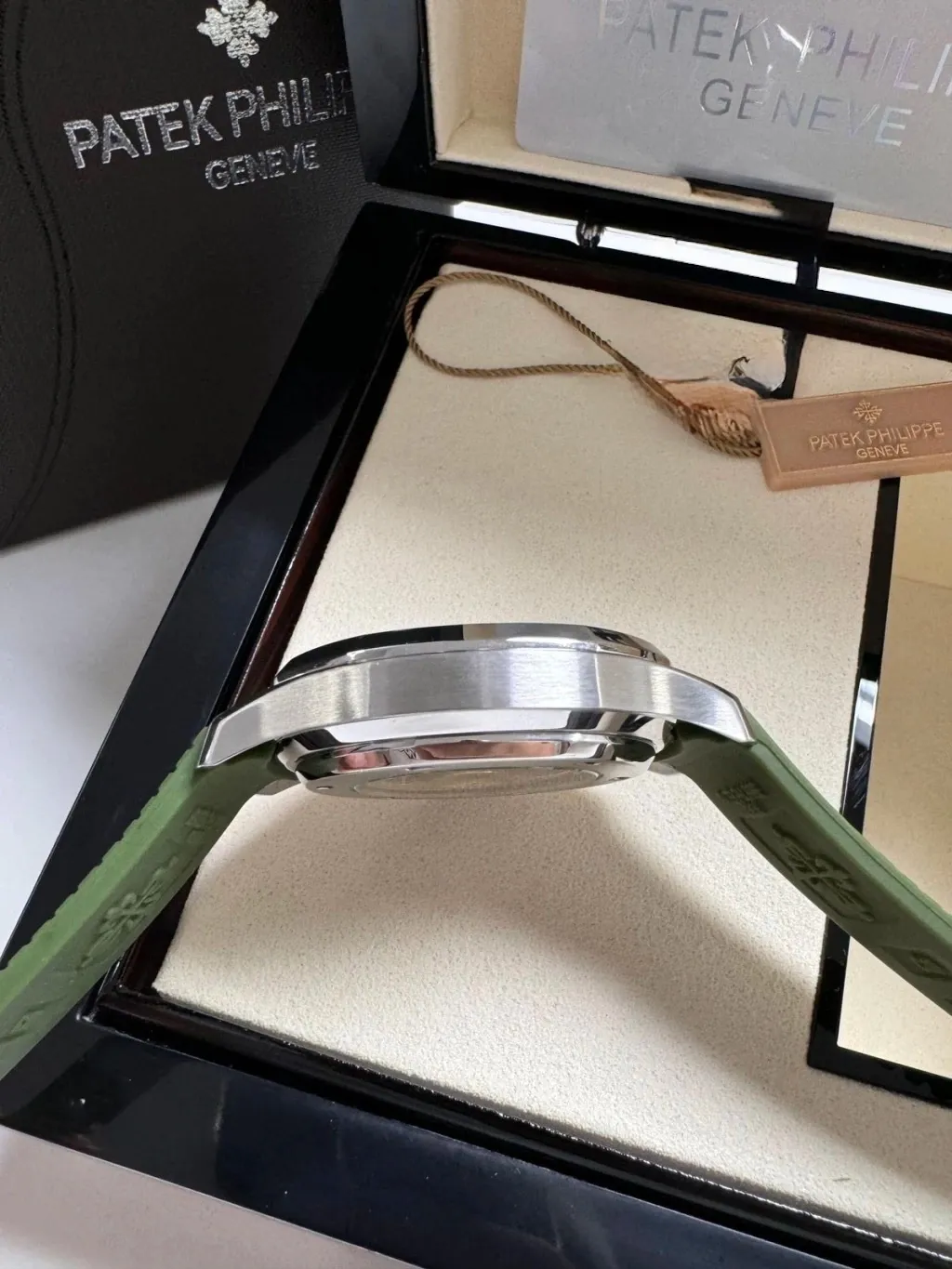 A pulseira em silicone garante conforto e durabilidade, perfeita para uso contínuo. Além disso, o relógio acompanha caixa e manual oficiais Patek Philippe, garantindo uma experiência completa e autêntica.