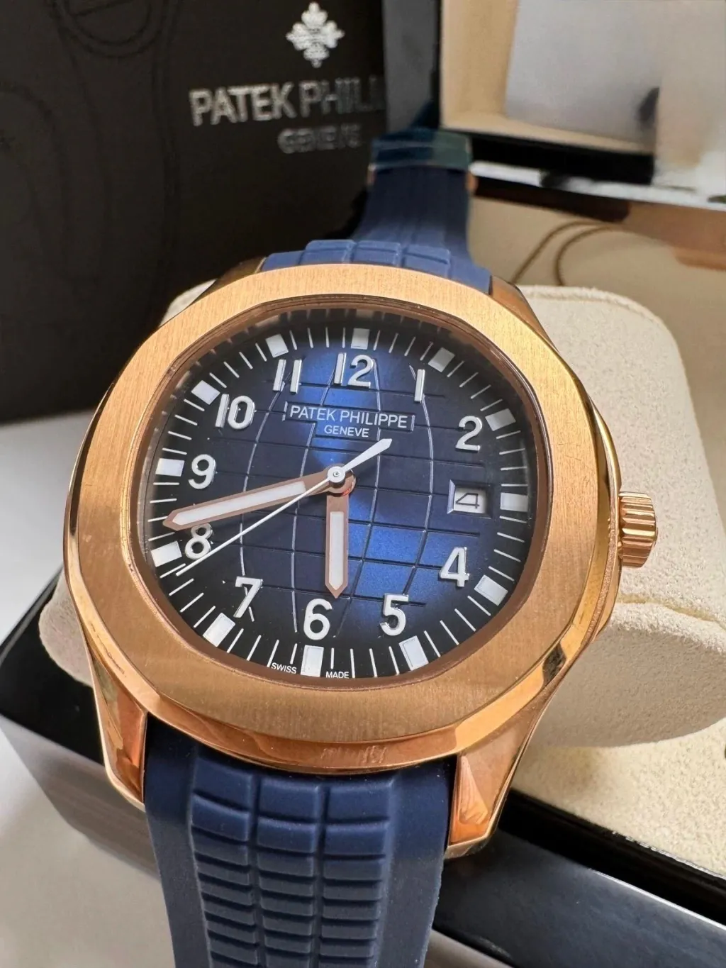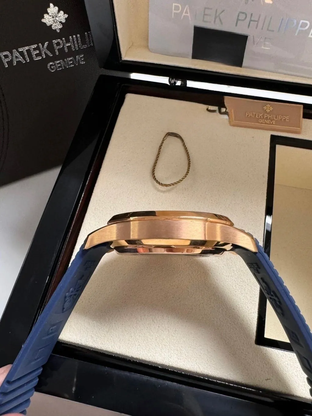 A pulseira em silicone garante conforto e durabilidade, perfeita para uso contínuo. Além disso, o relógio acompanha caixa e manual oficiais Patek Philippe, garantindo uma experiência completa e autêntica.