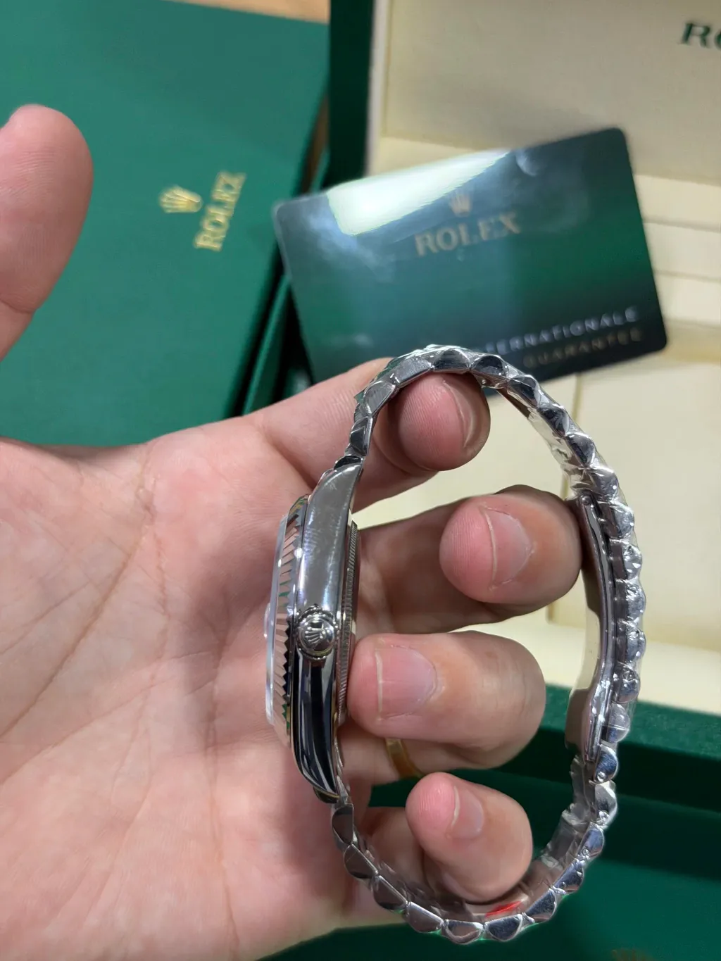Acompanha caixa e manual oficiais da Rolex, garantindo uma experiência completa e autêntica.