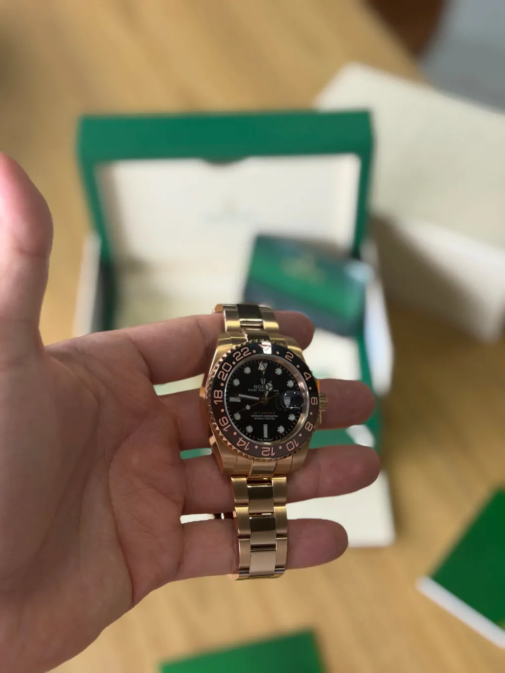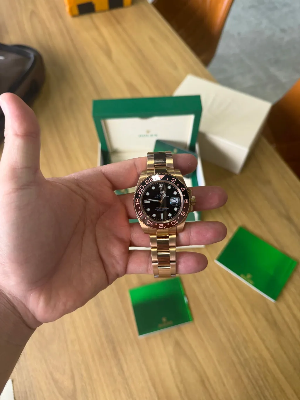 Rolex GMT-Master II / Gold A excelência em relojoaria agora ao seu alcance com este modelo Premium Superior, uma réplica perfeita do original em cada detalhe.