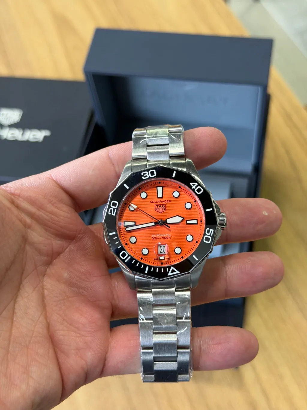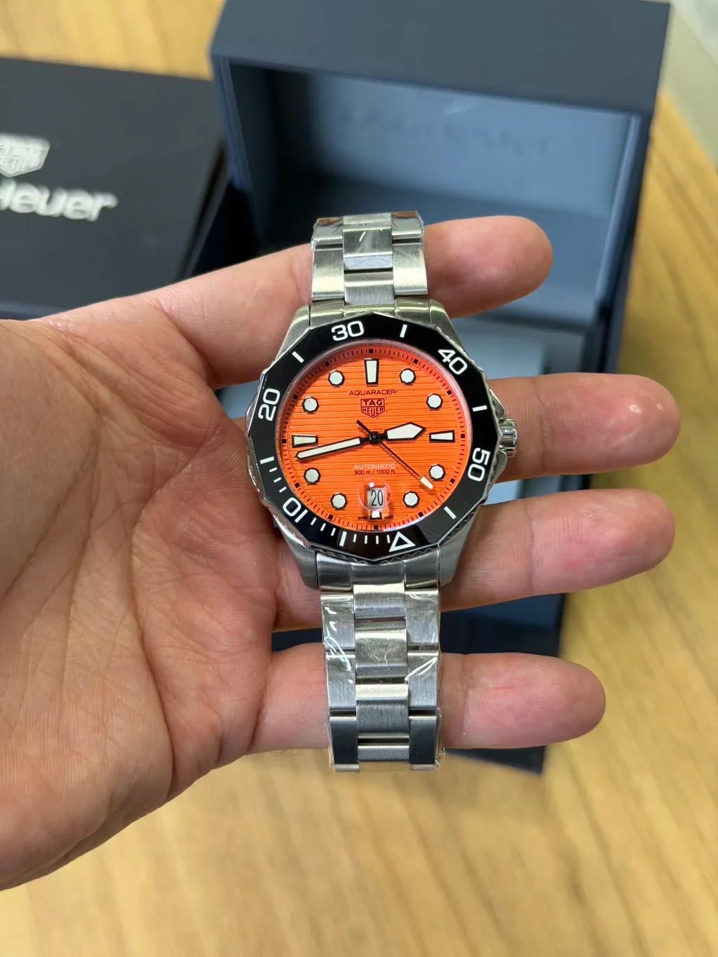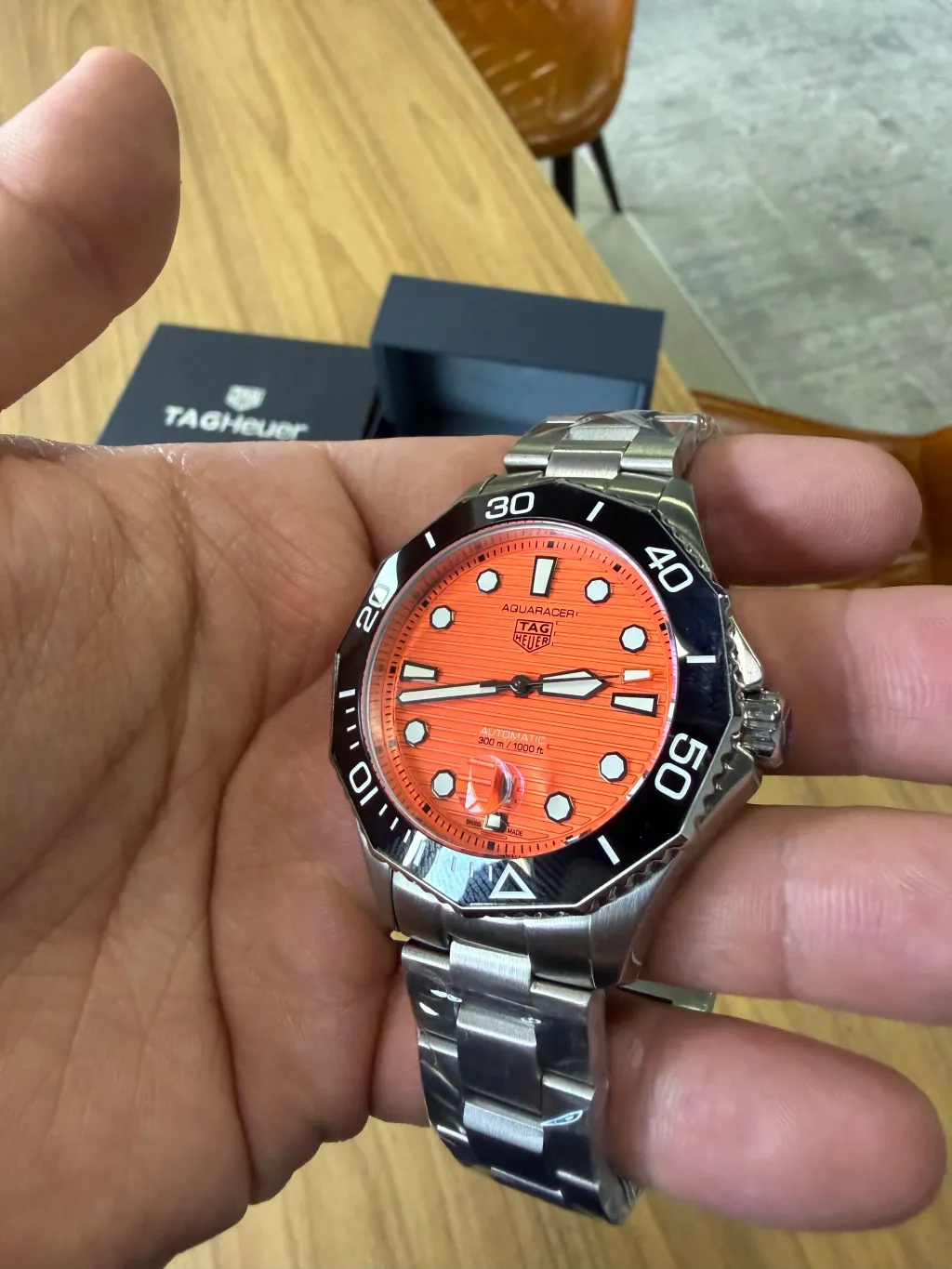 Tag Heuer Aquaracer – Orange: a réplica Premium Superior que traz toda a sofisticação e funcionalidade do autêntico relógio Tag Heuer, fiel em cada detalhe.