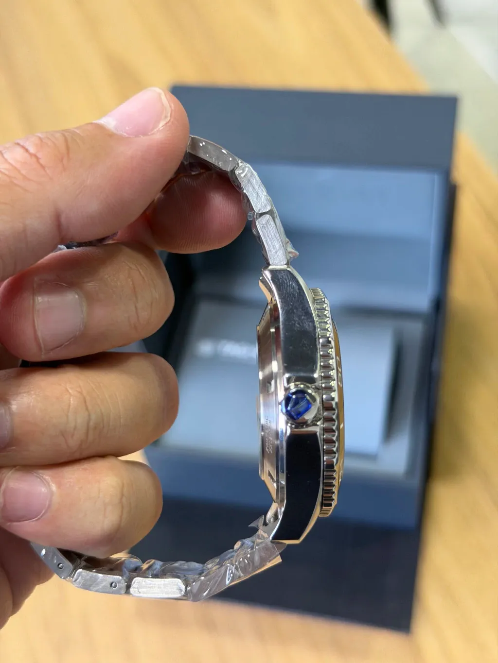 Este modelo apresenta uma máquina automática 100% funcional, com garantia de 1 ano, garantindo precisão e confiabilidade. Seu design robusto de 42 mm alia estilo e presença no pulso. O vidro em safira resistente a riscos protege o mostrador, enquanto o corpo em aço inoxidável denso confere durabilidade e acabamento refinado.
