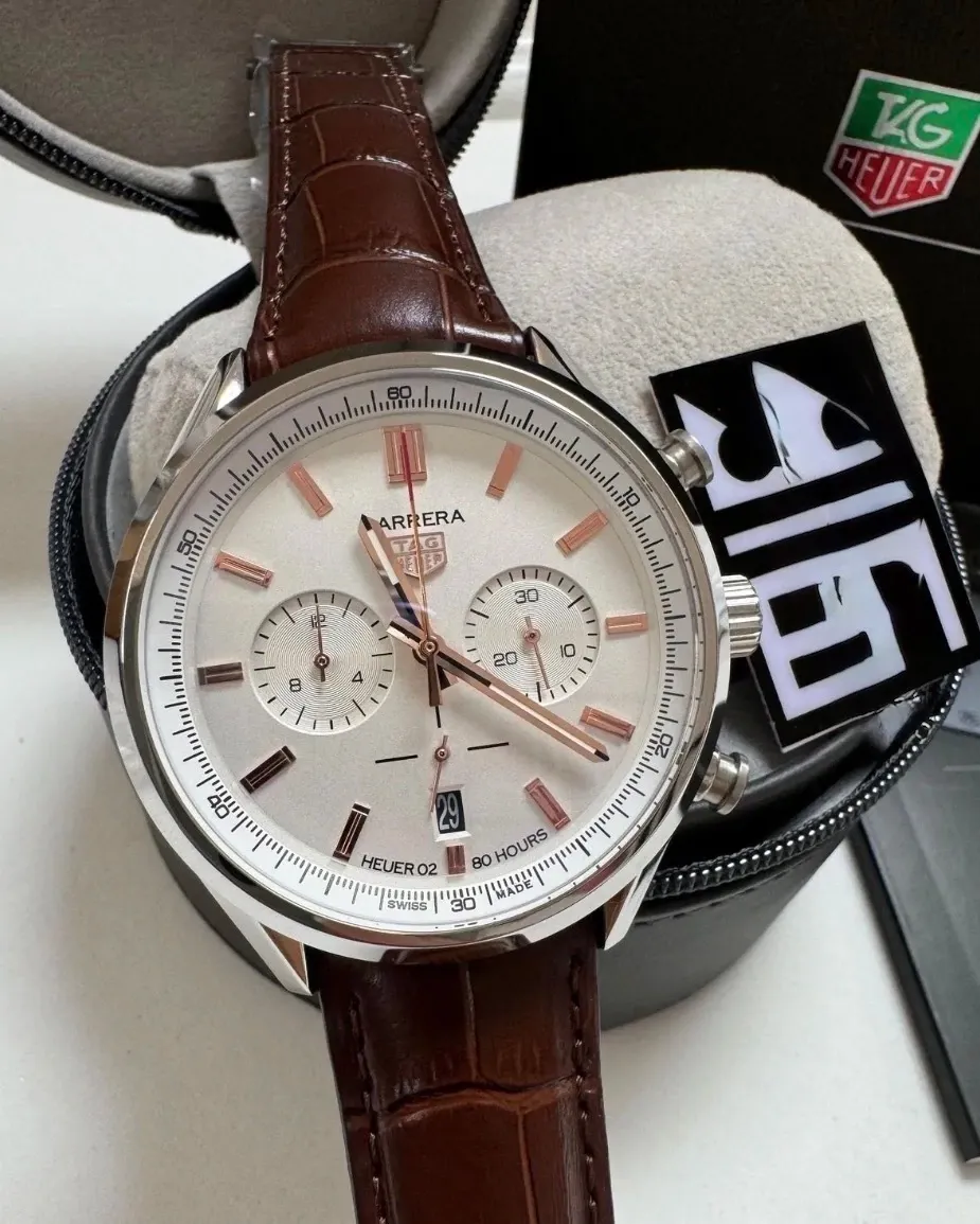 Apresentamos o Tag Heuer Carrera, uma peça Premium Superior, perfeitamente idêntica ao autêntico original em todos os detalhes. Equipado com uma máquina Quartz 100% funcional e 01 ano de garantia, oferece precisão e confiabilidade para o seu dia a dia.