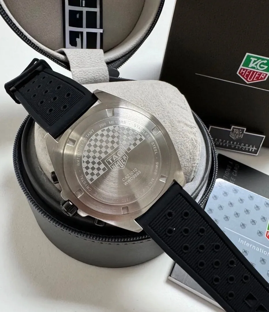 Além disso, é à prova d’água até 20 ATM, ideal para atividades aquáticas sem preocupações. Acompanha caixa exclusiva e manual Tag Heuer, completando a experiência de um produto de alta qualidade.