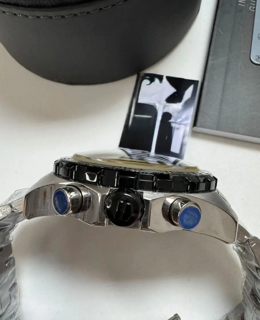 Com 44 mm de diâmetro, seu design robusto combina com qualquer estilo. O vidro em safira proporciona alta resistência a riscos, enquanto o aço inoxidável denso garante durabilidade e acabamento sofisticado.